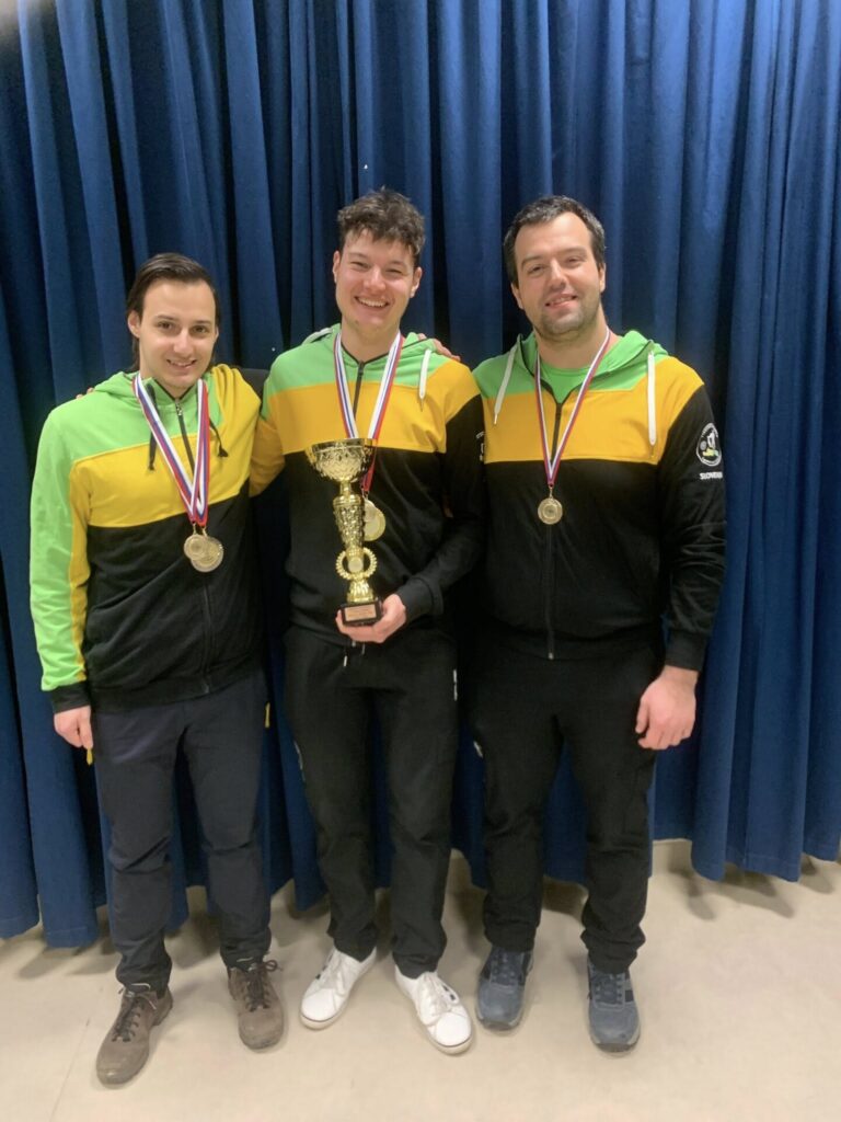 Člani s pištolo so nastopili v zelo močni konkurenci, Petja je bil najboljši 🥇, Jan pa takoj za njim 🥈, ekipa pa je bila najboljša med vsemi 🏆!